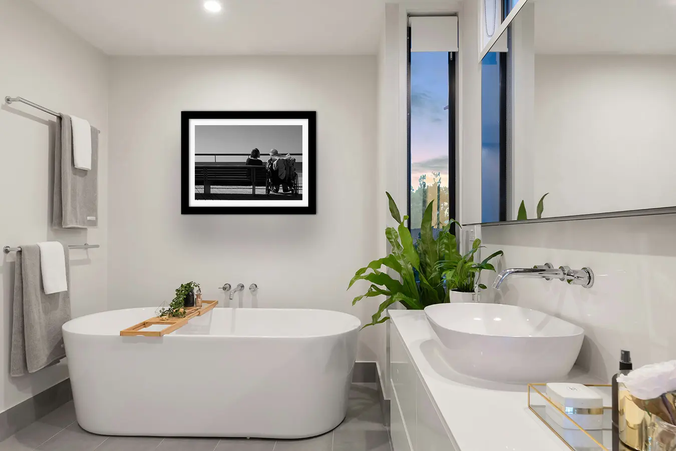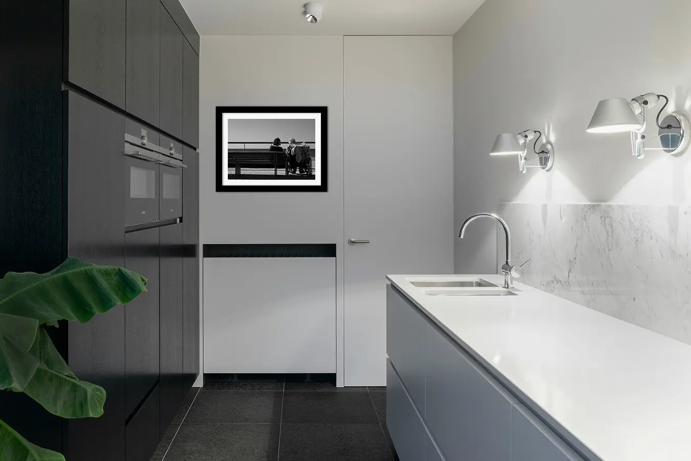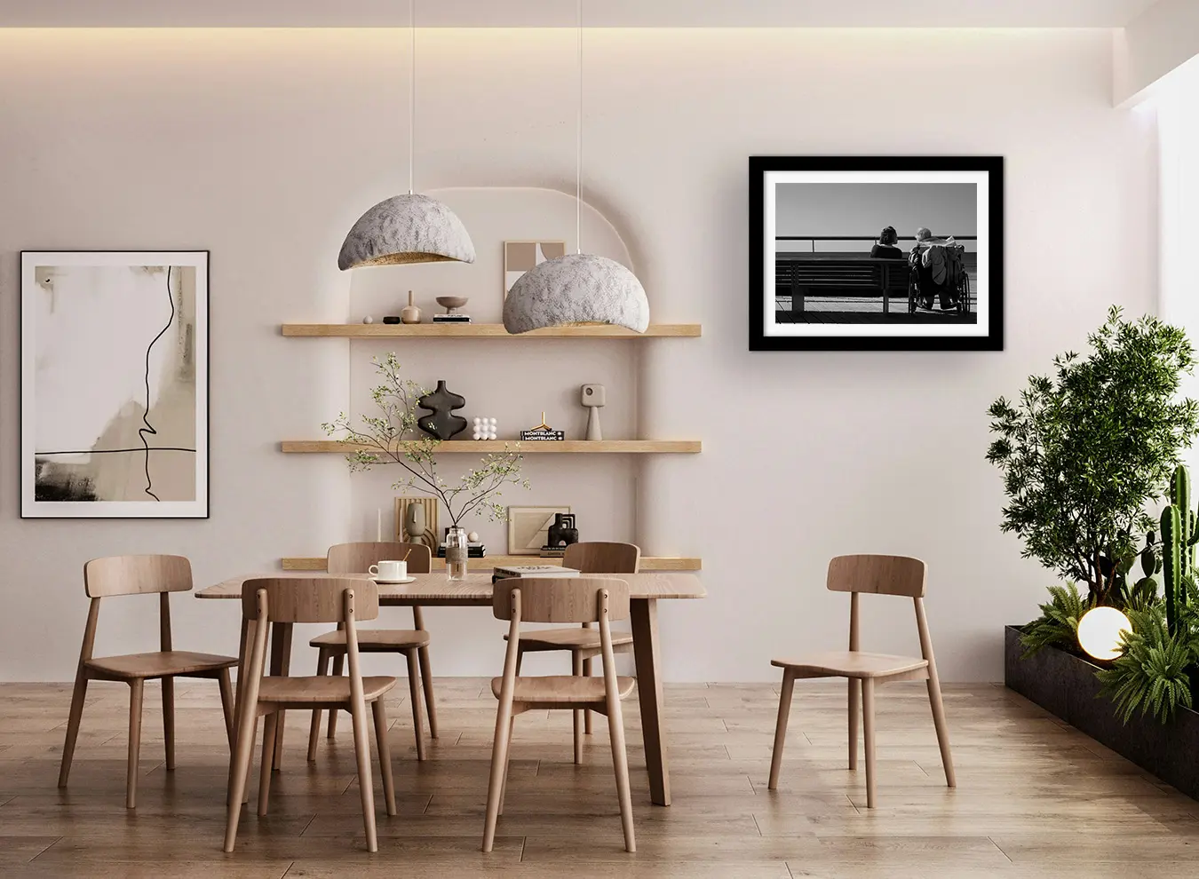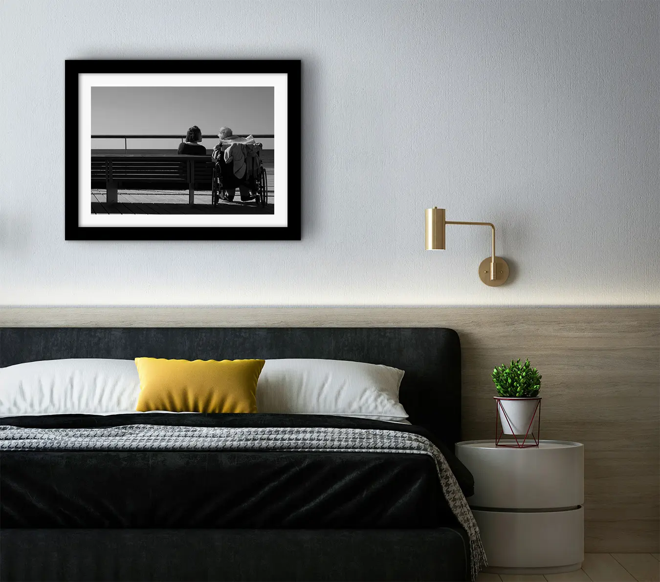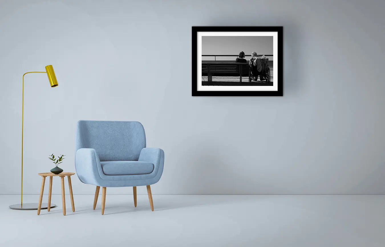 Chez vous, cette image crée un silence particulier. Pas une tristesse — une profondeur. Elle s’installe bien dans un salon où l’on veut mettre du sens sur un mur, ou dans un espace personnel où l’on tient à ce que les images racontent quelque chose de vrai. Elle touche sans expliquer. Elle laisse chacune y projeter ce qu’elle veut — sa propre grand-mère, ses propres conversations au bord de l’eau, ce temps que l’on prend ou que l’on regrette de ne pas avoir pris.