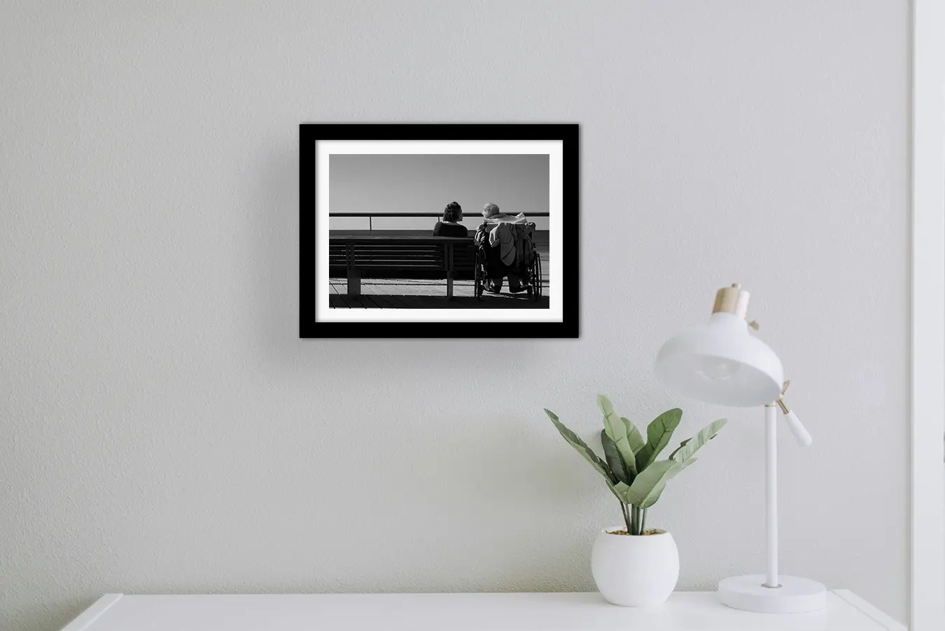 Ce détail, c’est ce qui reste après avoir vu cette photo pour la première fois. Deux dos tournés à l’objectif, une jeune fille assise sur un banc, une très vieille dame en fauteuil roulant à ses côtés, toutes les deux face à l’océan. Rien d’autre. Et pourtant, quelque chose dans cette image tient à la gorge.