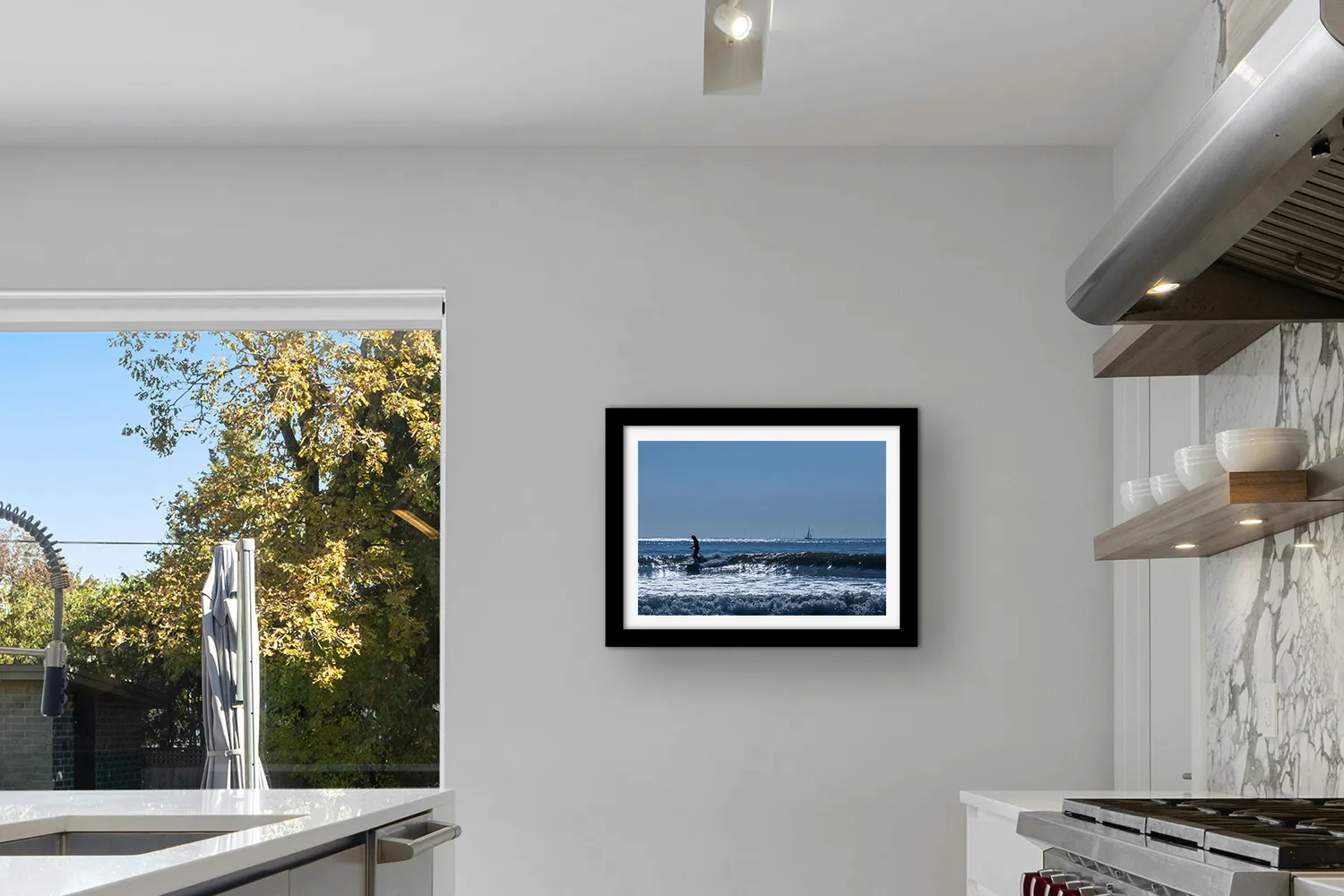 Dans un intérieur, cette photo apporte une énergie légère et lumineuse. Pas agressive, pas criarde — vivante. Elle convient parfaitement à une pièce à vivre tournée vers la mer, un couloir d’entrée, ou même une chambre d’ado passionné d’océan. Elle parle à celles qui ont un lien fort avec l’eau, même de loin, même depuis un canapé un soir de janvier.